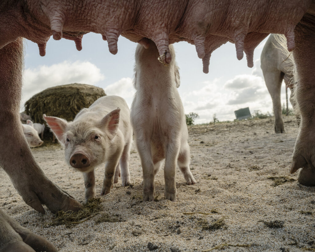”Jag träffade grisar första gången 2019 och tyckte att de var väldigt fascinerande. Inte lika något annat djur jag hade mött. De var så stora, med mänskliga ljud och observanta ögon. Men det är också det svåraste jag har fotograferat.”